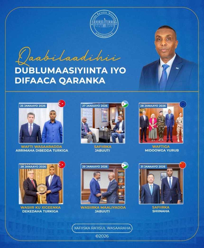 The diplomatic engagements reflect Somalia’s continued commitment to strengthening its international relations, in accordance with established diplomatic norms, international law, and global principles governing the protection of the sovereignty of independent states and the non-interference in their internal affairs.
