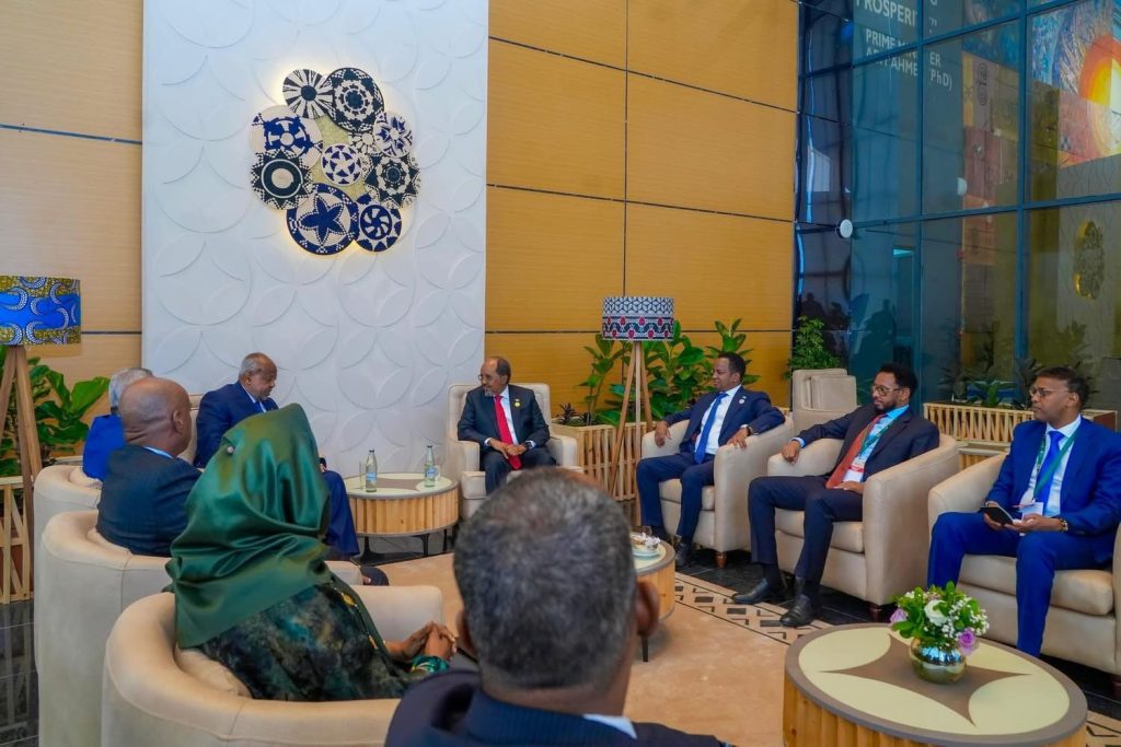 Addis Ababa, (SONNA) – On the sidelines of the 2nd African Climate Summit, the President of the Federal Republic of Somalia, H.E. Hassan Sheikh Mohamud, held bilateral meetings with President Ismail Omar Guelleh of Djibouti and President William Ruto of Kenya.