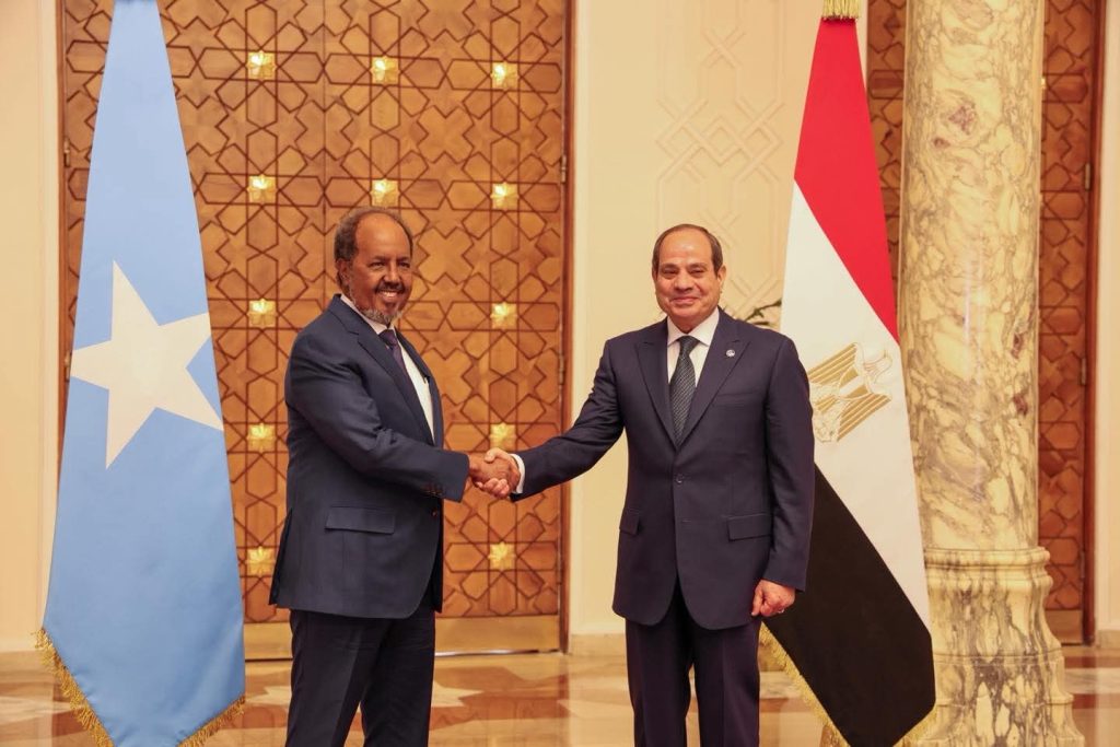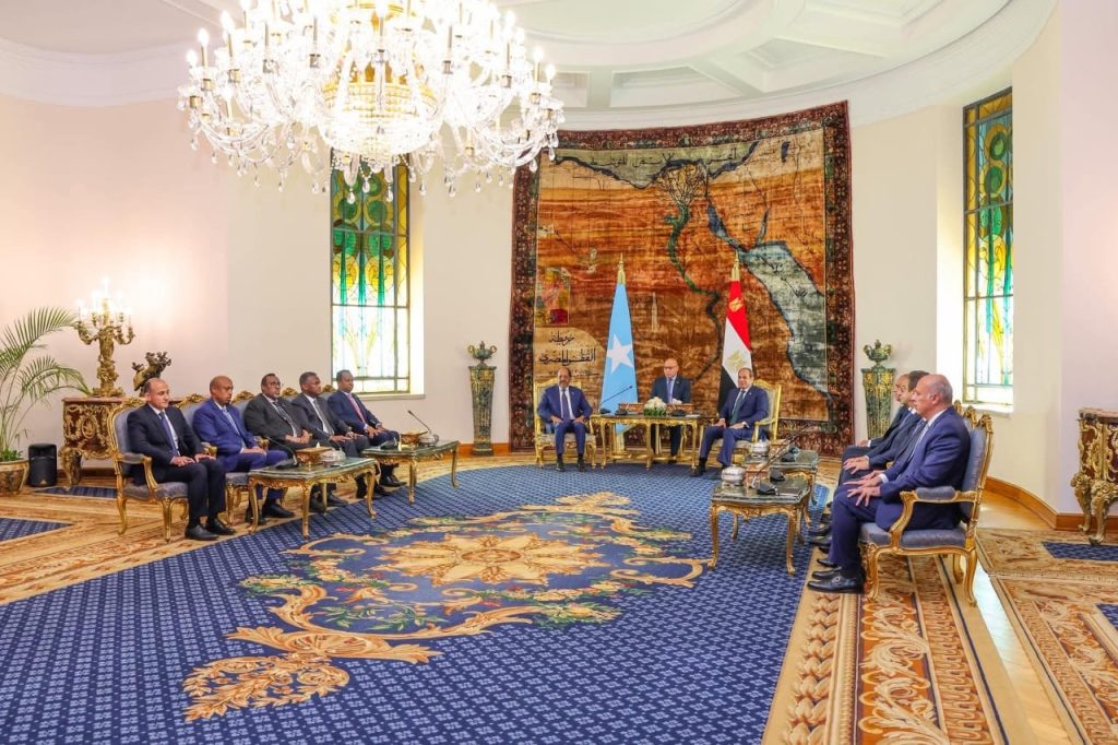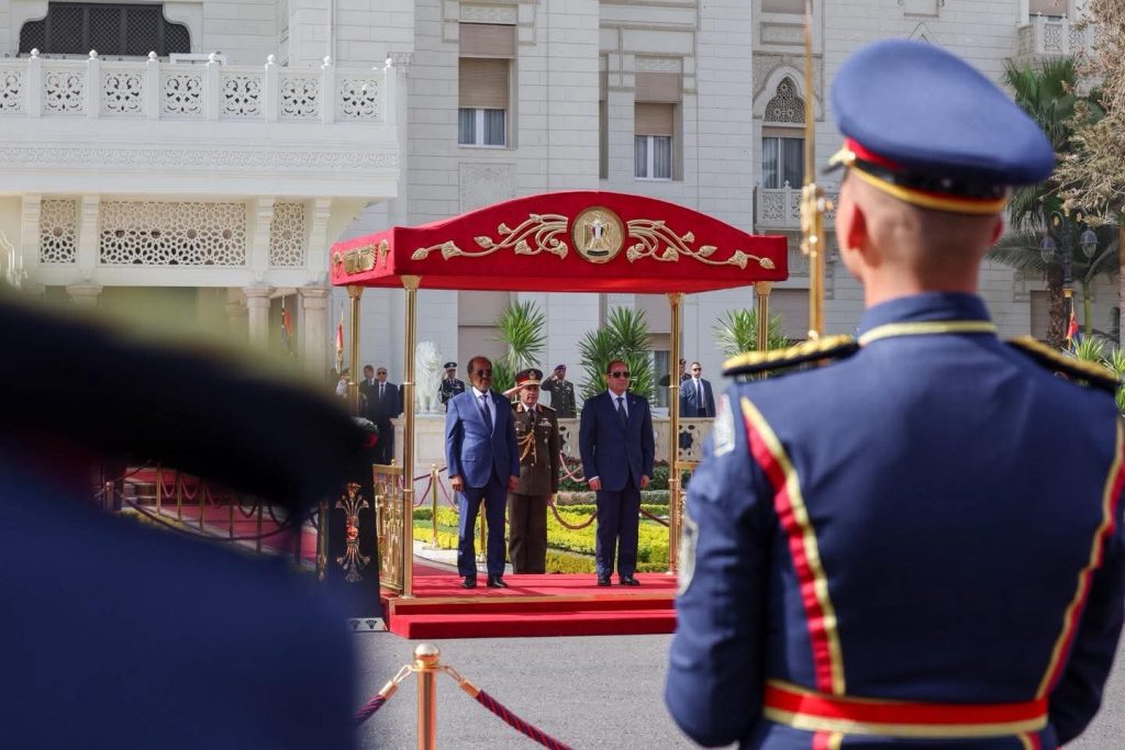 Cairo, (SONNA) — The President of the Federal Republic of Somalia, H.E. Hassan Sheikh Mohamud, was accorded a high-level official reception at Al-Ittihadiya Presidential Palace in Cairo, where he was received by his Egyptian counterpart, H.E. Abdel Fattah El-Sisi.