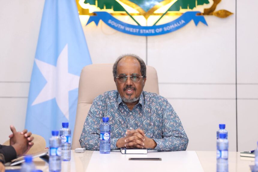 Baidoa, SONNA — The President of the Federal Republic of Somalia, H.E. Hassan Sheikh Mohamud, alongside the Interim Leader of South West State, H.E. Jibril Abdirashid Haji Abdi, has co-chaired a high-level meeting in Baidoa bringing together the South West State Council of Ministers and commanders of the Somali Armed Forces.