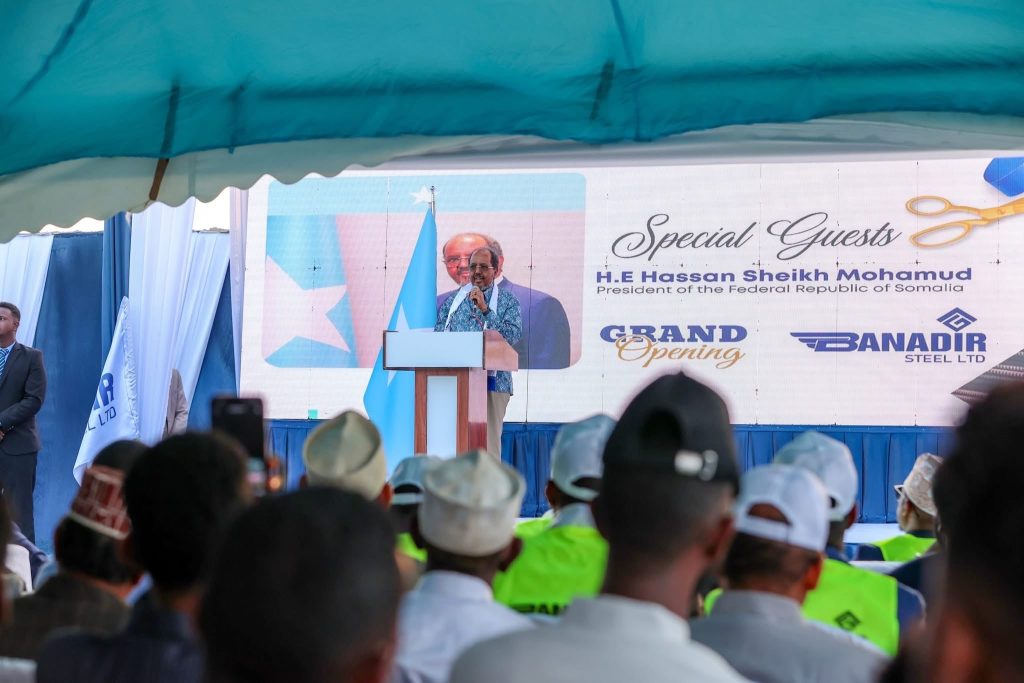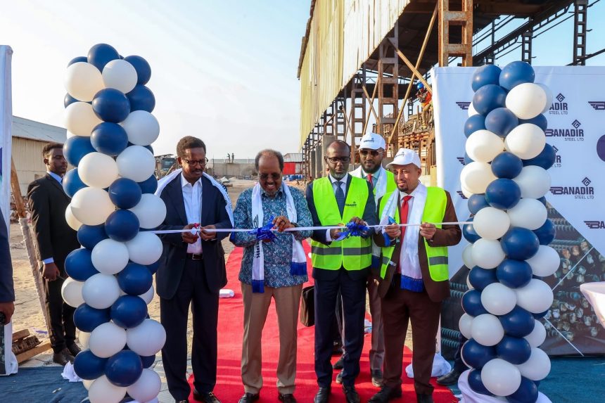 Mogadishu, (SONNA) — The President of the Federal Republic of Somalia, H.E Hassan Sheikh Mohamud inaugurated the Banaadir Steel Factory in Mogadishu, producing construction-grade reinforcement steel through recycled metal.