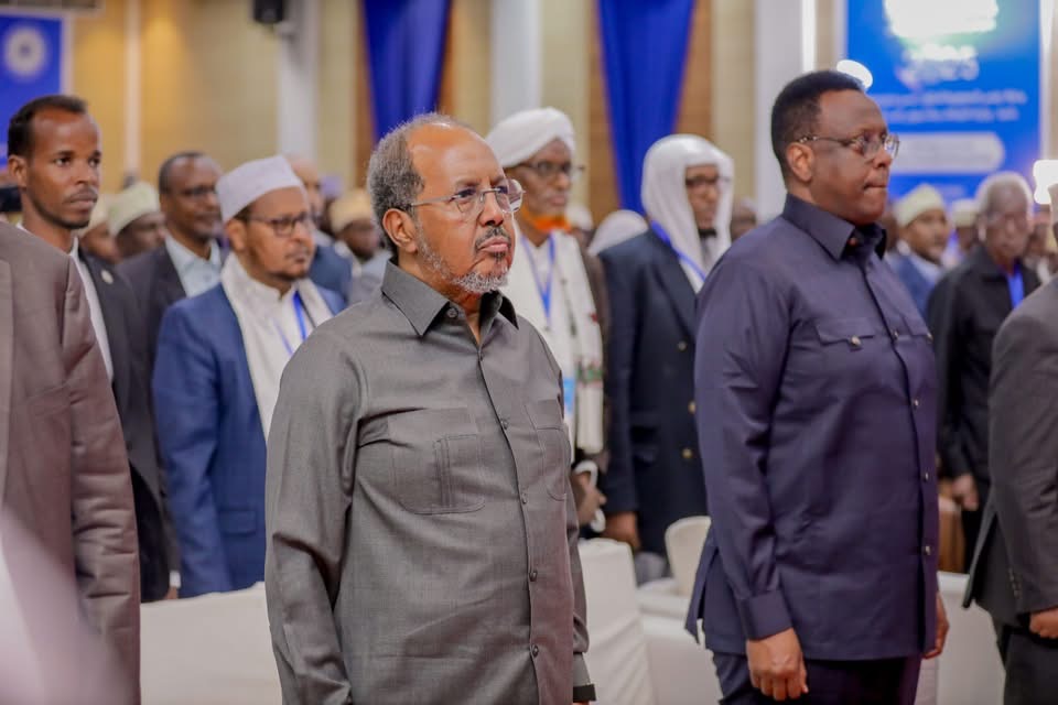 President Hassan Sheikh praised Somali scholars for their ongoing role in guiding the community, urging them to intensify public awareness on the importance of fasting, prayer, and especially Zakat — a pillar he emphasized as essential for social cohesion.