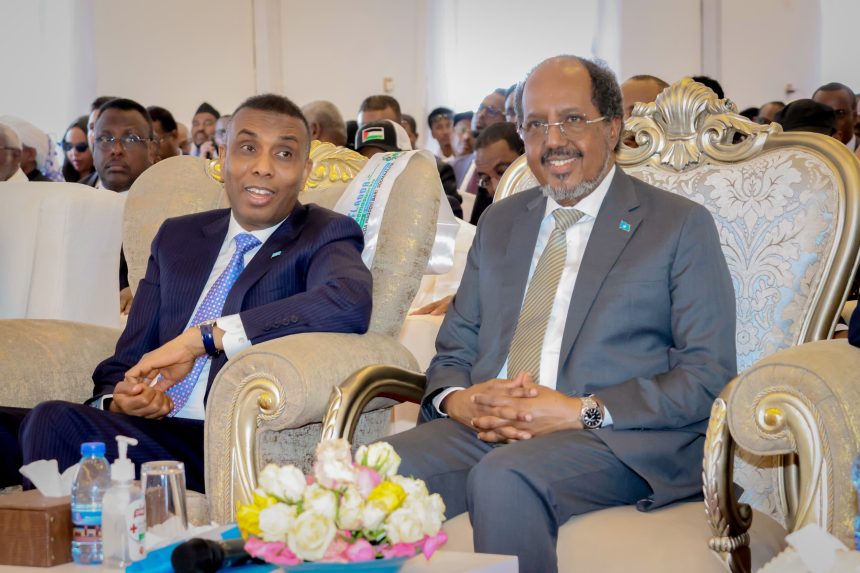 Mogadishu, SONNA — The President of the Federal Republic of Somalia, Dr. Hassan Sheikh Mohamud, alongside the Prime Minister and other federal leaders, attended the inauguration ceremony of the newly elected President of the Northeastern State of Somalia, H.E. Abdulqadir Ahmed Aw Ali (Firdhiye), in Las Anod, Sool region.