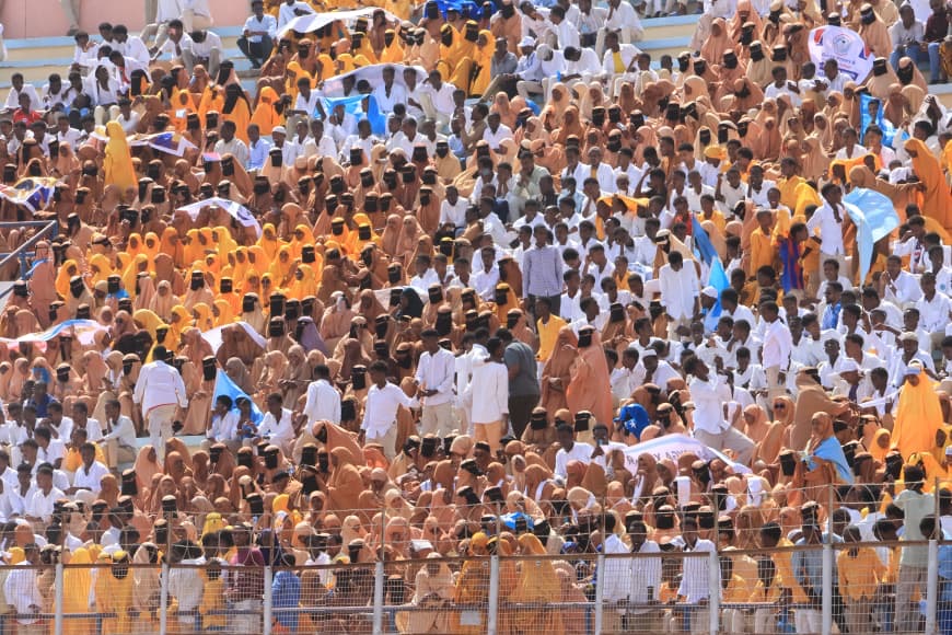 President Hassan Sheikh participates in the Somali Teachers’ Day at Mogadishu Stadium