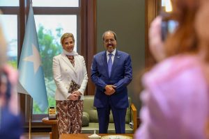 Mogadishu, SONNA – The President of the Federal Republic of Somalia, H.E. Hassan Sheikh Mohamud, today received at the National Palace Her Royal Highness Sophie, Duchess of Edinburgh, a senior member of the British Royal Family.