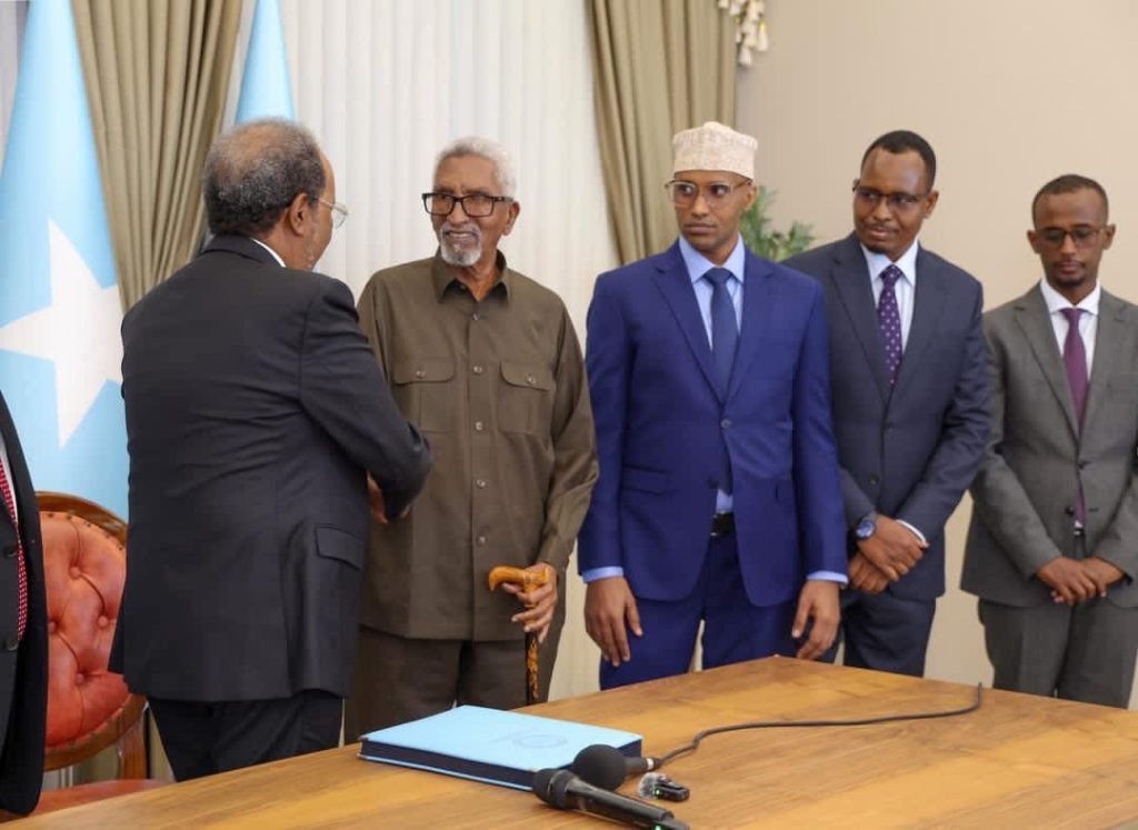 The signing ceremony was attended by the Speaker of the House of the People, Sheikh Aadan Mohamed Nur, the Speaker of the Upper House, Senator Cabdi Xaashi Cabdullaahi, and the chairpersons of the Constitutional Review Committees.