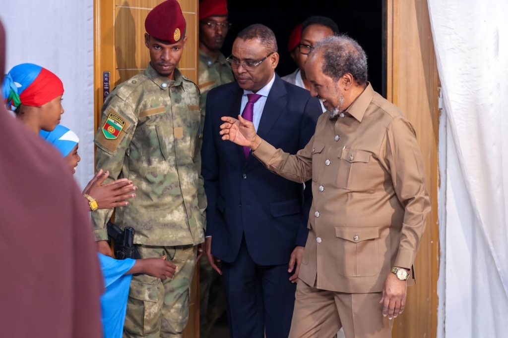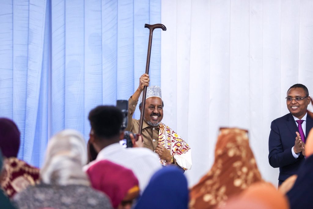 Baidoa, (SONNA) — The President of the Federal Republic of Somalia, H.E. Hassan Sheikh Mohamud, accompanied by the Interim Leader of the South West State, H.E. Jibriil Abdirashid Haji, took part in a large event where women from the South West State demonstrated their support for the implementation of one-person, one-vote elections.