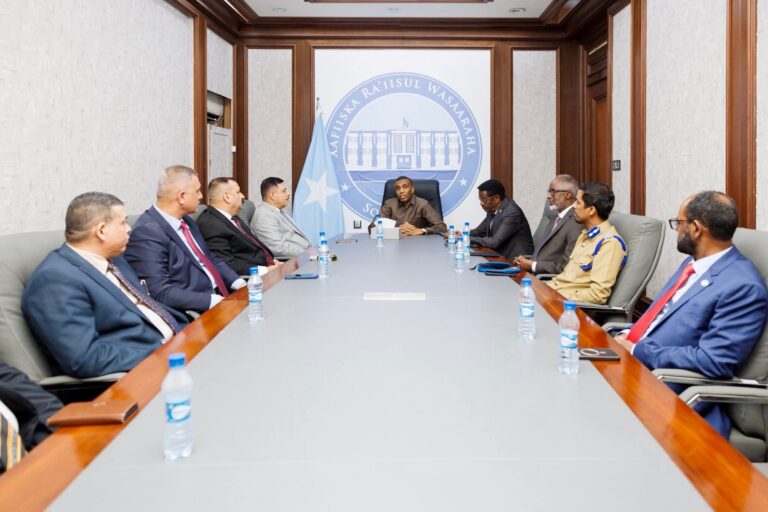 MOGADISHU (SONNA) – The Prime Minister of the Federal Republic of Somalia, H.E. Hamza Abdi Barre, received a delegation from the Government of Iraq at his office in Mogadishu today.