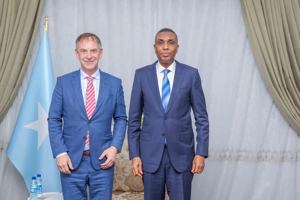 Mogadishu, (SONNA) — The Prime Minister of the Federal Government of Somalia, H.E. Hamza Abdi Barre, today received the Ambassador of the Federal Republic of Germany to Somalia, Sebastian Groth, in his office.