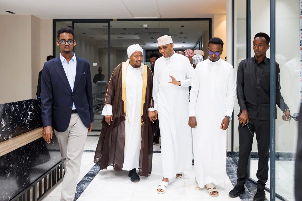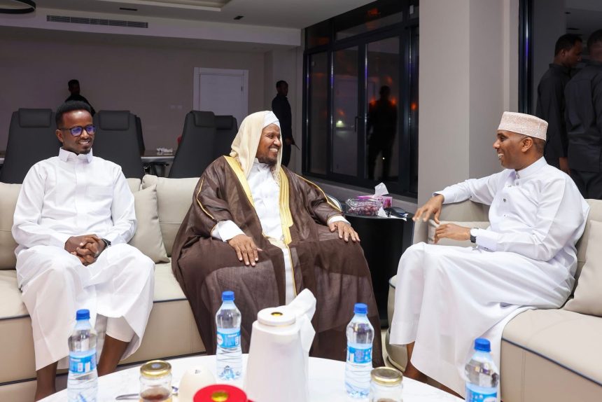 Mogadishu, (SONNA) — The Prime Minister of the Federal Government of Somalia, H.E Hamza Abdi Barre, on Friday evening visited prominent Somali scholar Sheikh Abdirashid Sheikh Ali Suufi at his residence in Mogadishu. The Prime Minister briefed the Sheikh on the overall situation of the country, with both discussing efforts to raise public awareness, the role of religious leaders in peace-building, and strengthening national unity. Sheikh Suufi offered prayers for the nation and the Somali people.