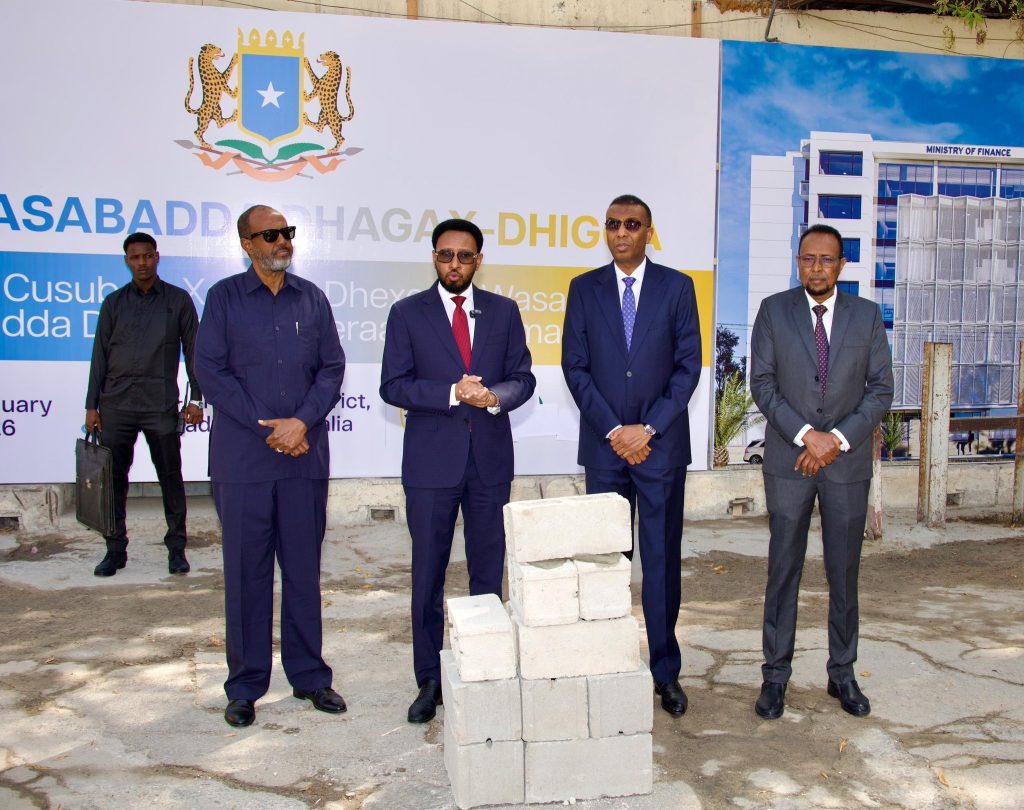 Mogadishu, (SONNA) — The Prime Minister of the Federal Government of Somalia, H.E. Hamza Abdi Barre, officially laid the foundation stone for the construction of a new central headquarters for the Ministry of Finance. The modern facility will replace the old building constructed in 1980 and is intended to meet the expanding needs and responsibilities of the ministry.