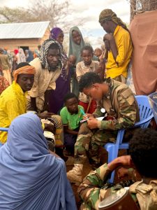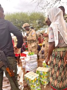 Operating deep within affected zones, including the villages of Mad-dhoos and Gomaray, the Gorgor units effectively transitioned from kinetic combat maneuvers to advanced humanitarian logistics. The troops actively secured the perimeter and distributed heavy rations and essential food supplies, while simultaneously deploying tactical water delivery systems to stabilize communities suffering from immediate resource scarcity.