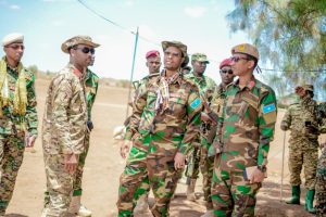 The Commander’s delegation integrated top-tier military leadership, featuring the Commander of the elite 16th Danab Commando Brigade, Colonel Abdiaziz Hussein Mohamed, alongside the Acting Commander of the SNA Support Command, Colonel Ahmed Abdinasir Ahmed. This combined presence of regular infantry command, special operations forces, and logistical leadership demonstrates a highly synchronized state military apparatus focused on total territorial control and sustained operational readiness.