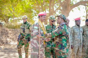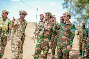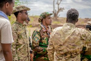 During the field maneuvers, General Sahal and his command team arrived at the strategic forward operating locations of Sabiid, Caanoole, and Mubaarak. The primary objective of this mission was to powerfully reinforce troop morale, assess physical defense fortifications on the ground, and aggressively accelerate the offensive tempo against the remaining Khawaarij networks operating within the sector.