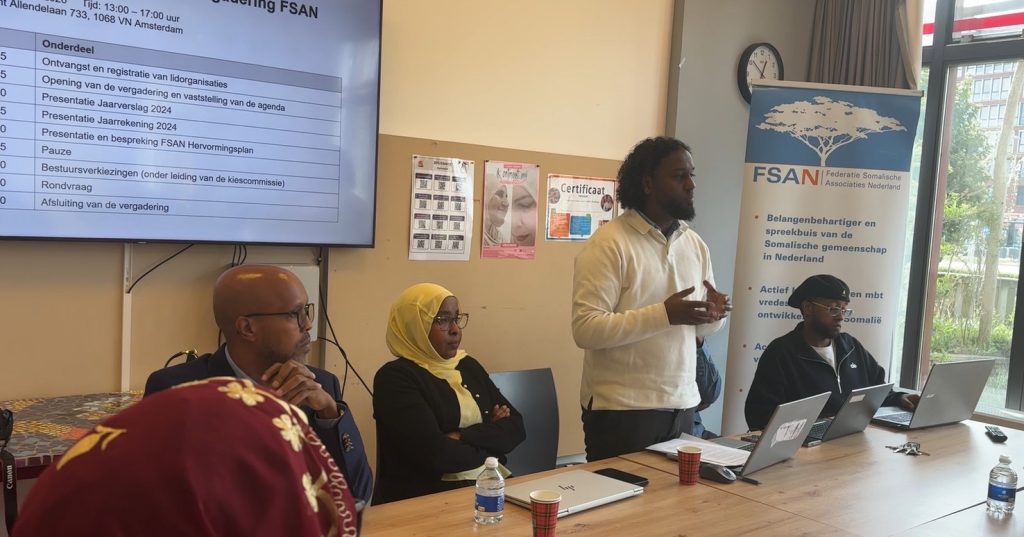 AMSTERDAM, (SONNA) — The Federation of Somali Associations Netherlands (FSAN), the umbrella organization representing Somali communities across the country, has elected a new leadership committee to guide the organization for the next three years. The elections, held in Amsterdam on March 29, 2026,were attended by more than 20 representatives from member organizations.