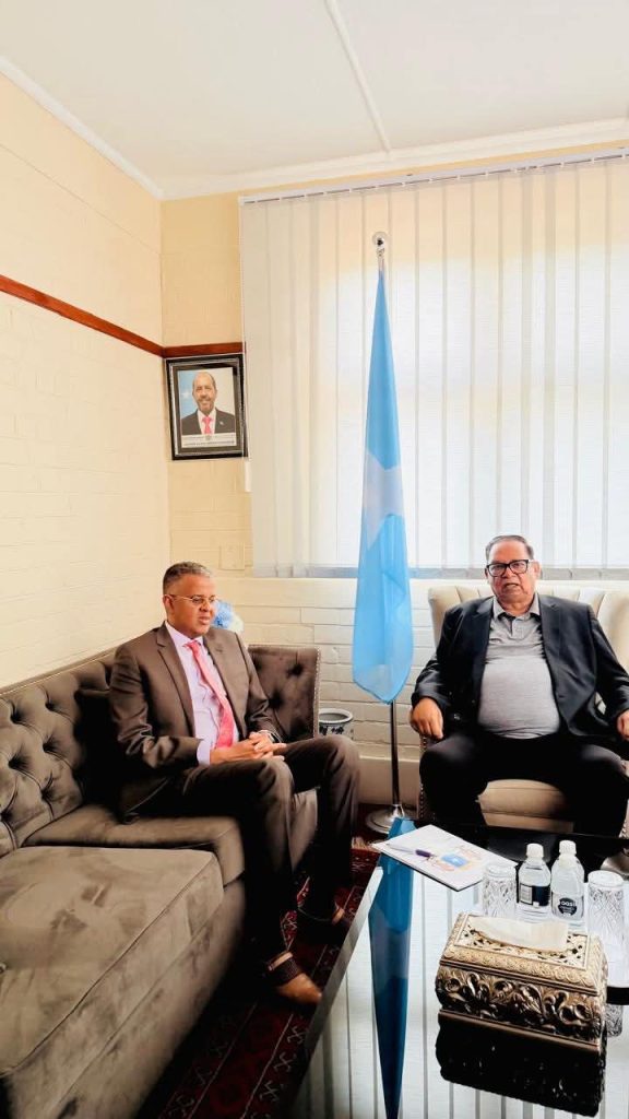 Pretoria, (SONNA) — The Embassy of the Federal Republic of Somalia in South Africa on Tuesday received a courtesy visit from South Africa’s Deputy Minister of Social Development, Hon. H. Garief Hendricks.
