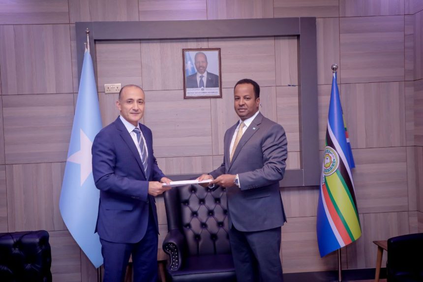 The ceremony took place at the Ministry’s headquarters in Mogadishu, where Minister Abdisalam warmly welcomed Ambassador Keshtah and conveyed his best wishes for a successful tenure in furthering the historical and brotherly relations between the two nations.