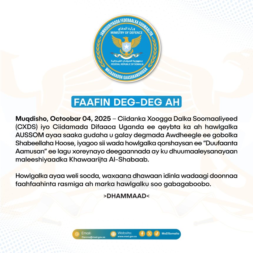 The liberation of Awdheegle marks a major milestone in the ongoing “Silent Storm” offensive, a multi-phase military campaign aimed at dismantling Al-Shabaab’s presence in southern Somalia. Awdheegle is a key agricultural town located about 80 kilometers southwest of Mogadishu, and its recapture is vital for securing critical supply routes and protecting local communities. The district had been a hideout and a source of revenue for the militants.