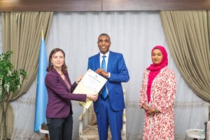 At the conclusion of the meeting, Prime Minister Hamza, accompanied by Minister Khadija, presented Ambassador Sanders with an honorary certificate recognizing the United Kingdom’s continued support and partnership in promoting human rights and strengthening national institutions in Somalia.