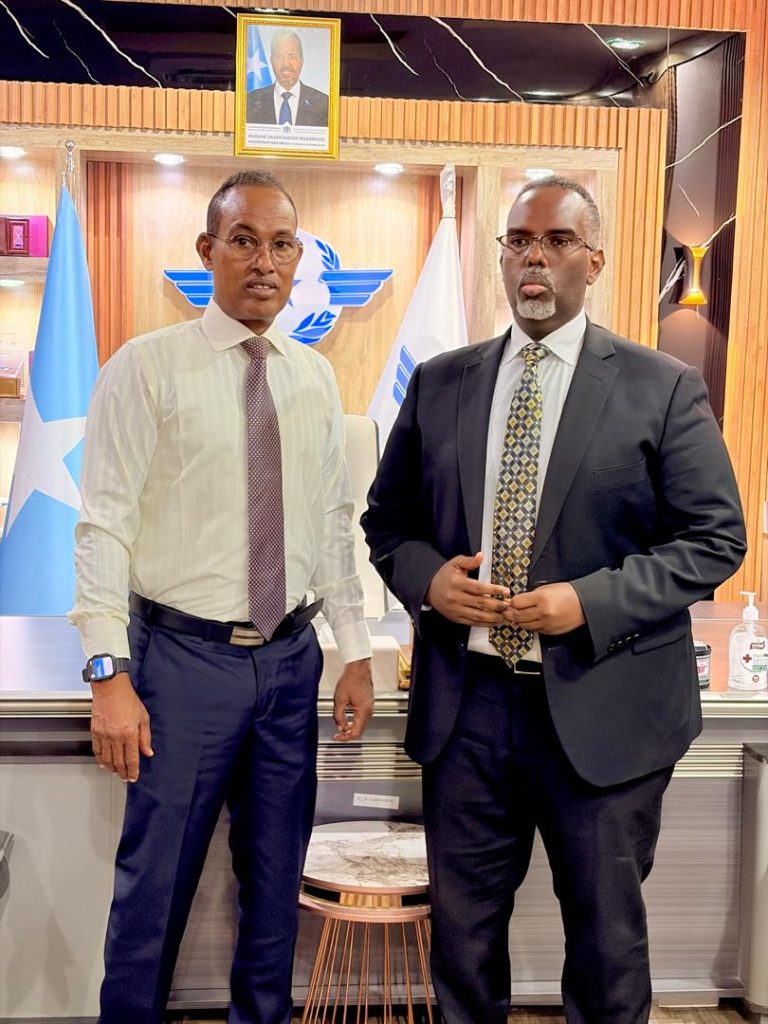 Mogadishu, (SONNA) — The Director of Investment Department of the Ministry of Planning, Investment and Economic Development of the Federal Government of Somalia, Mr. Mohamed Dubo, and his team engaged with the Somali Civil Aviation Authority to advance cooperation and investment in Somalia’s aviation sector. ‬