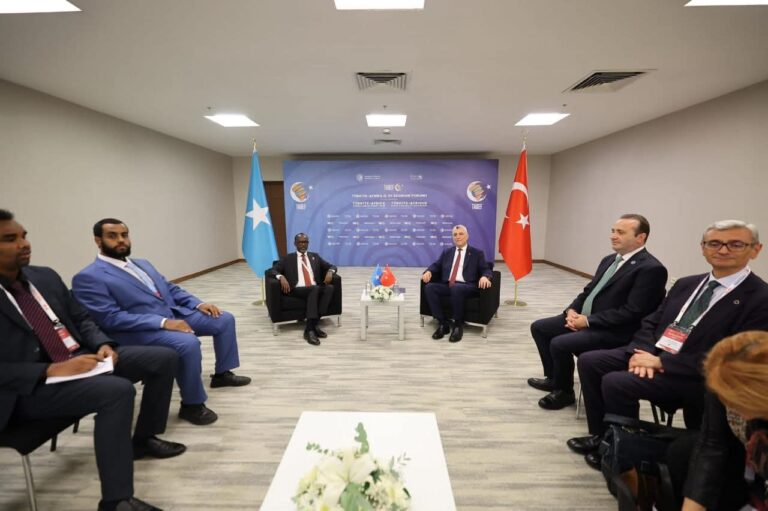 ISTANBUL (SONNA) β The Minister of Commerce and Industry of the Federal Government of Somalia, Mahamud Ahmed Adan (Geesood), held a productive bilateral meeting with his Turkish counterpart, Prof. Γmer Bolat, in Istanbul today. The meeting took place during the Turkey-Africa Business and Economic Forum.