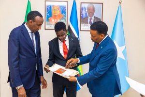 The Ambassador of the Federal Republic of Somalia to the United Republic of Tanzania and Permanent Representative of Somalia to the East African Community (EAC), Ambassador Ilyas Ali Hassan, formally handed over the official decision to the Minister of Internal Security, General Abdulahi Sheikh Ismail “Fartaag,” and the Director General of the Immigration and Citizenship Agency (ICA), Mustafa Sheikh Ahmed Dhuhulow.