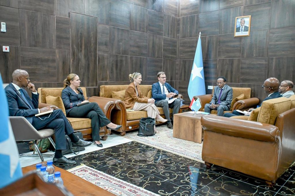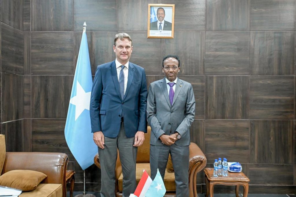 Mogadishu, (SONNA) — The Deputy Minister of Foreign Affairs and International Cooperation of the Federal Government of Somalia, H.E. Hasan Mohamed Ali, held a meeting with Henk Jan Bakker, Ambassador of the Kingdom of the Netherlands to Somalia, accompanied by the Netherlands’ Envoy for the Horn of Africa.