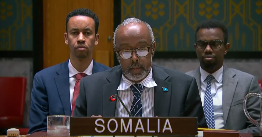 New York, USA – At a truly historic UN Security Council meeting, its 10,000th session, Somalia’s Ambassador to the UN, H.E. Abukar Dahir Osman, delivered a powerful and emotionally charged statement that deeply resonated with the global community. The meeting, convened to address the dire situation in the Middle East, particularly the escalating crisis in Gaza, witnessed a draft resolution calling for an immediate and permanent ceasefire tragically fail due to a veto by the United States. Somalia, as a non-permanent member of the council, co-sponsored this critical resolution and stood unyielding in its support for the Palestinian people.