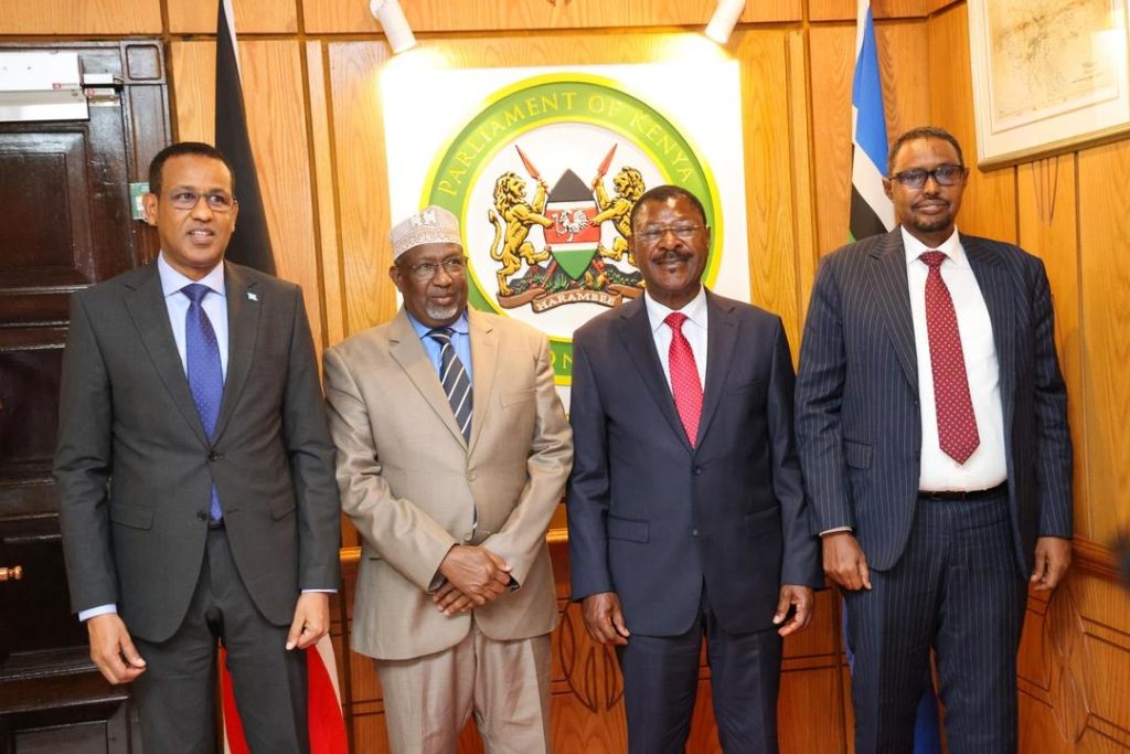 Mogadishu, (SONNA) — The Speaker of the House of the People of the Federal Republic of Somalia, Hon. Sheikh Aden Mohamed Noor (Madoobe), who is currently in Nairobi, held a meeting with his Kenyan counterpart, Moses M. Wetang’ula.