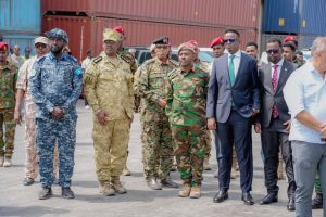 MOGADISHU (SONNA) — The State Minister of Defense of the Federal Government of Somalia, H.E. Omar Abdi Ali, alongside the Commander of the Somali National Army (SNA), Brigadier General Ibrahim Mohamed Mohamud, led a high-level delegation on Wednesday to welcome a deployment of Turkish Navy warships to the port of Mogadishu. The arrival of the vessels marks a continued deepening of the defense cooperation between Somalia and Turkey, specifically regarding maritime security.