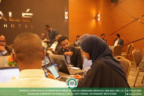 Mogadishu, (SONNA) — The Validation Workshop for Somalia’s NDC 3.0 was officially opened today by H.E. Ahmed Omar Mohamed , State Minister of Environment and Climate Change.
