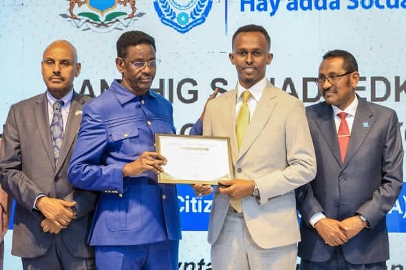 Muqdisho(SONNA):-Mas’uuliyiin sare oo ugu horeeyo Wasiirka Wasaaradda Amniga Gudaha, Mudane Gen. Abdullaahi Sh. Ismail Fartaag, Agaasimaha Guud ee HSJ, Mudane Mustafa Duhulow iyo Guddoomiyaha Guddiga Amniga ee Barlamaanka JFS, Mudane Nuur Axmed Diiriye, ayaa guddoonsiiyay Abaalmarino saraakiisha loo aqoonsaday inay sanadkan 2025 kaalin weyn ka qaateen horumarinta iyo isbedelka shaqo ee Hay’adda.