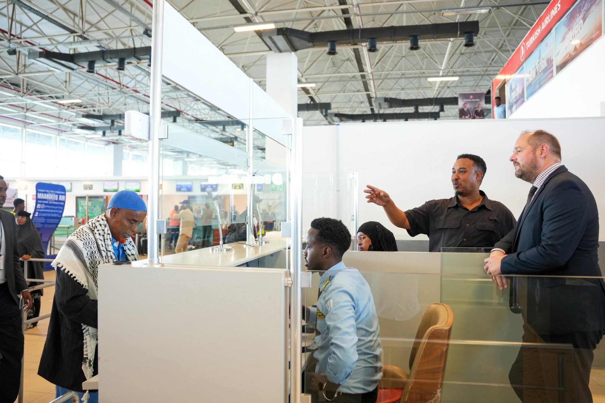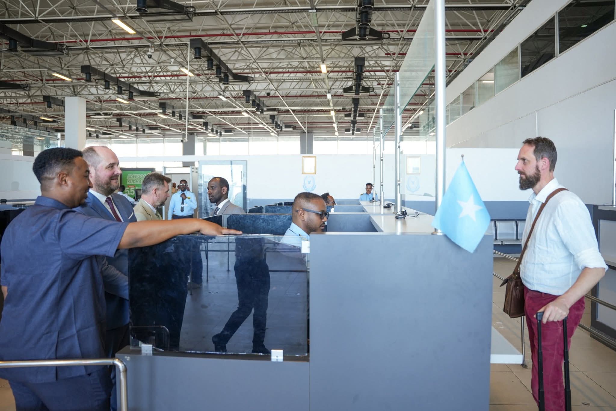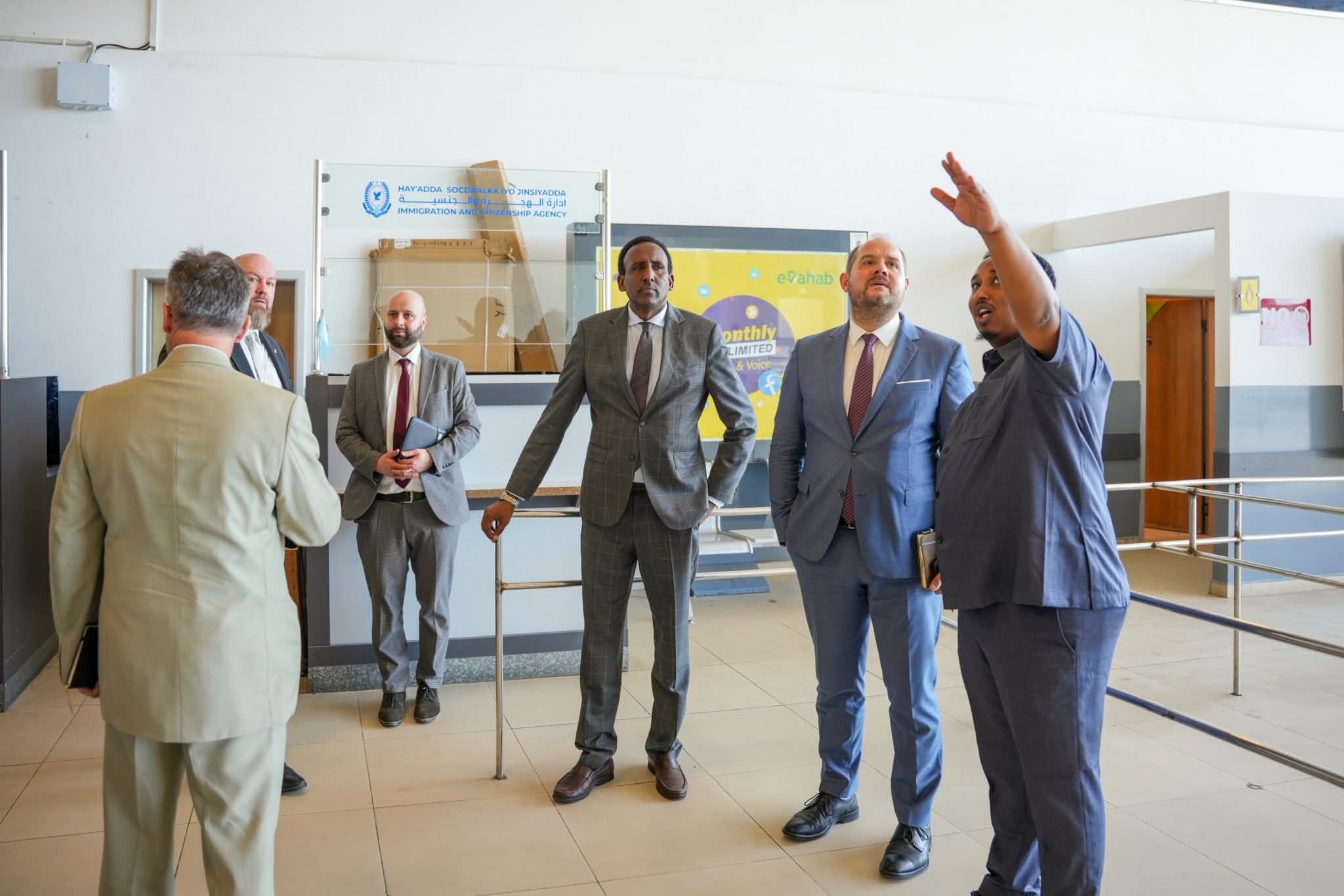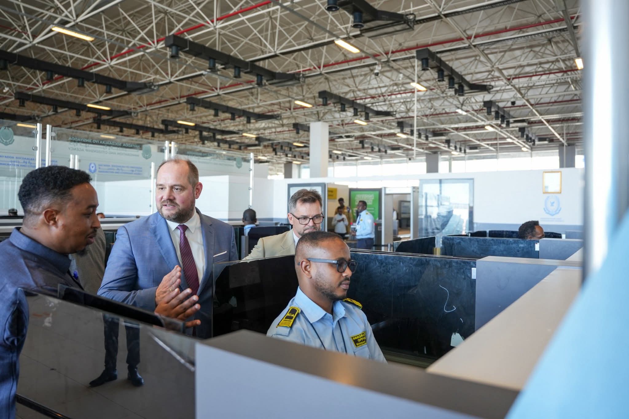 Inta lagu guda jiray booqashada shaqo, wafdiga Jarmalka ayaa booqday Garoonka Diyaaradaha Caalamiga ah ee Aadan Cadde, halkaas oo ay si dhow uga indha-indheeyeen maareynta rakaabka imanaya iyo kuwa baxaya, khadadka koontaroolka 1-aad iyo 2-aad, hawlaha Qaybta Baarista Dukumentiyada iyo nidaamka guud ee maareynta xuduudaha, iyagoo si gaar ah u eegay doorka HSJ ee sugidda amniga qaranka.