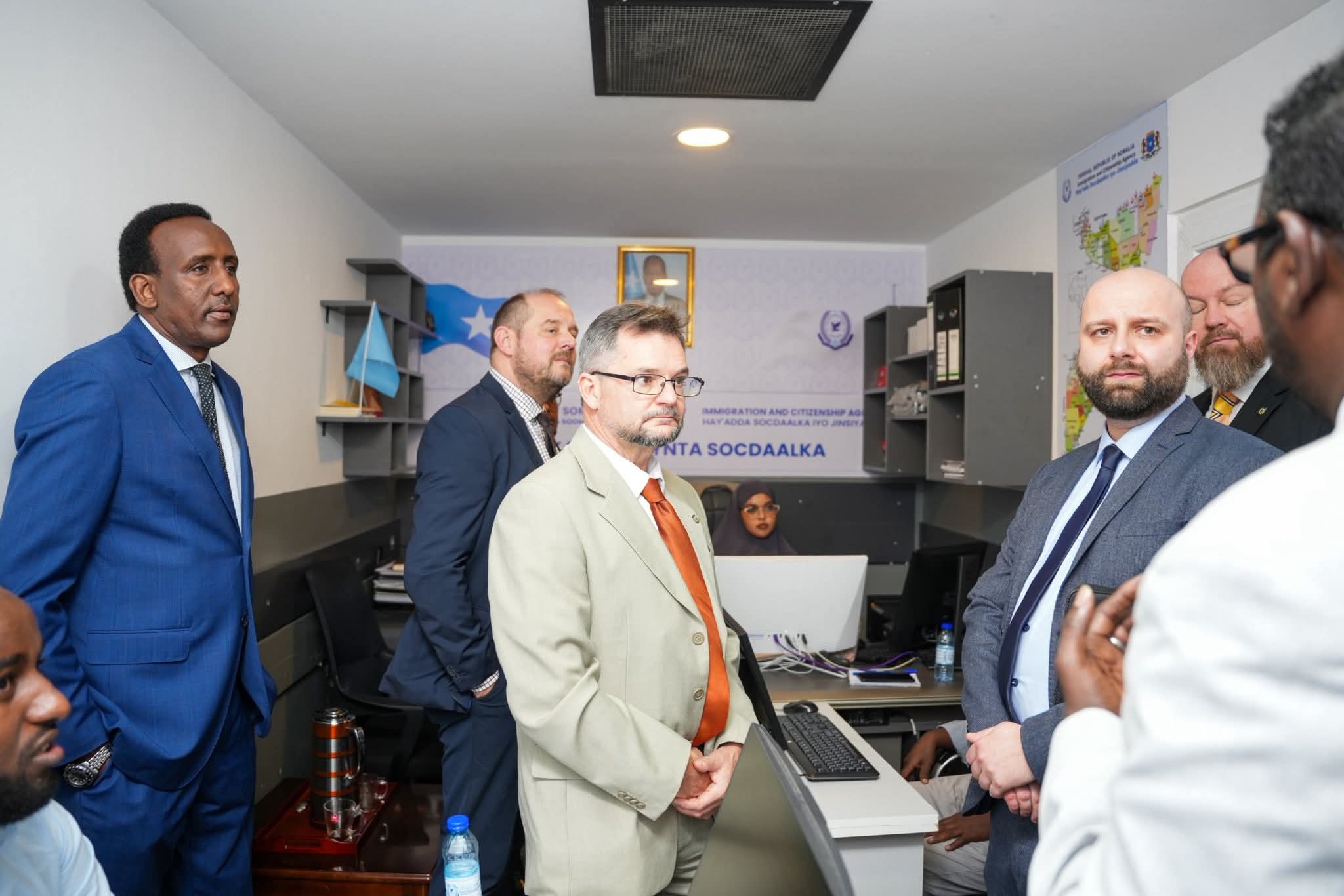 Muqdisho(SONNA):-Wafdi heer sare ah oo ka socday Dowladda Jamhuuriyadda Federaalka Jarmalka oo uu hoggaaminayo Madaxda Xiriirka Dowladaha ee Federaal Booliiska Mudane Colonel Niels Zimmermann ayaa booqasho shaqo ku yimid dalka Soomaaliya, halkaas oo ay kulan kula yeesheen Madaxda Hayโ€™adda Socdaalka iyo Jinsiyadda (HSJ) uu ugu horreeyo Agaasimaha Guud Mudane Mustafa Dhuxulow wafdigan ayaa Booqasho ku joogayย  magaalada Muqdisho intii u dhaxaysay 21โ€“22 Janaayo 2026, ayaa ujeeddadeedu ahayd xoojinta xiriirka laba-geesoodka ah, is-dhaafsiga khibradaha, iyo horumarinta wada-shaqeynta dhinacyada maareynta socdaalka, sugidda amniga xuduudaha, horumarinta baasaboorka Soomaaliga iyo la dagaallanka socdaalka sharci-darrada ah.