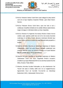 9- Ra’iisul Wasaare Xamsa Cabdi Barre ayaa u magacaabay Maxamed Isaaq Cabdinuur inuu noqdo Agaasimaha Guud ee Adeegyada Wasaaradda Waxbarashada,iyadoo Marwo Xabiibo Cali Maxamed loo magacaabey Agaasimaha Guud ee Horumarinta Waxbarashada Farsamada Gacanta iyo Xirfadaha.