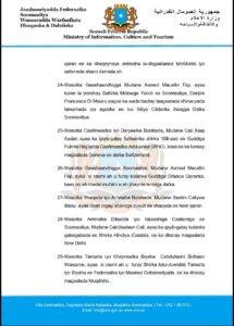 27- Wasiirka Shaqada iyo Arrimaha Bulshada Mudane Saalim Caliyow Ibrow, ayaa daah rogay sharciga cusub ee shaqada ee heer qaran.
