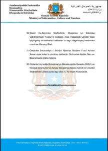 32- Ciidanka Hayโadda Sirdoonka iyo Nabadsugidda Qaranka (NISA) oo hawlgal qorshaysan ka fuliyay deegaanka Maxaa Saciid ee Gobolka Shabeellaha Dhexe,ayaa lagu dilay 13 ka tirsan Khawaarijta.