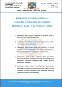 26- Wasiirka Gaashaandhigga Soomaaliya, Mudane Axmed Macallin Fiqi, ayaa si rasmi ah u furay kulanka Guddiga Difaaca Qaranka, kaas oo ah madal muhiim u ah jihaynta amniga dalka.