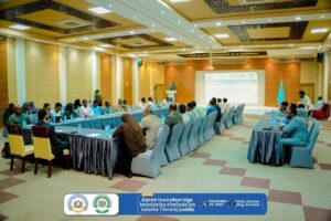 Muqdisho,(SONNA):- Wasiiru-dowlaha Wasaaradda Isgaarsiinta iyo Teknolojiyadda, Mudane Axmed Diiriye, ayaa si rasmi ah u furay aqoon-isweydaarsi ku saabsan isbedelka cimilada iyo xalalka teknoolojiyadda, kaas oo lagu talagalay in lagu xoojiyo awoodda hay’adaha dowladda ee ka jawaabista caqabadaha cimilada iyadoo la adeegsanayo teknoolojiyad casri ah.