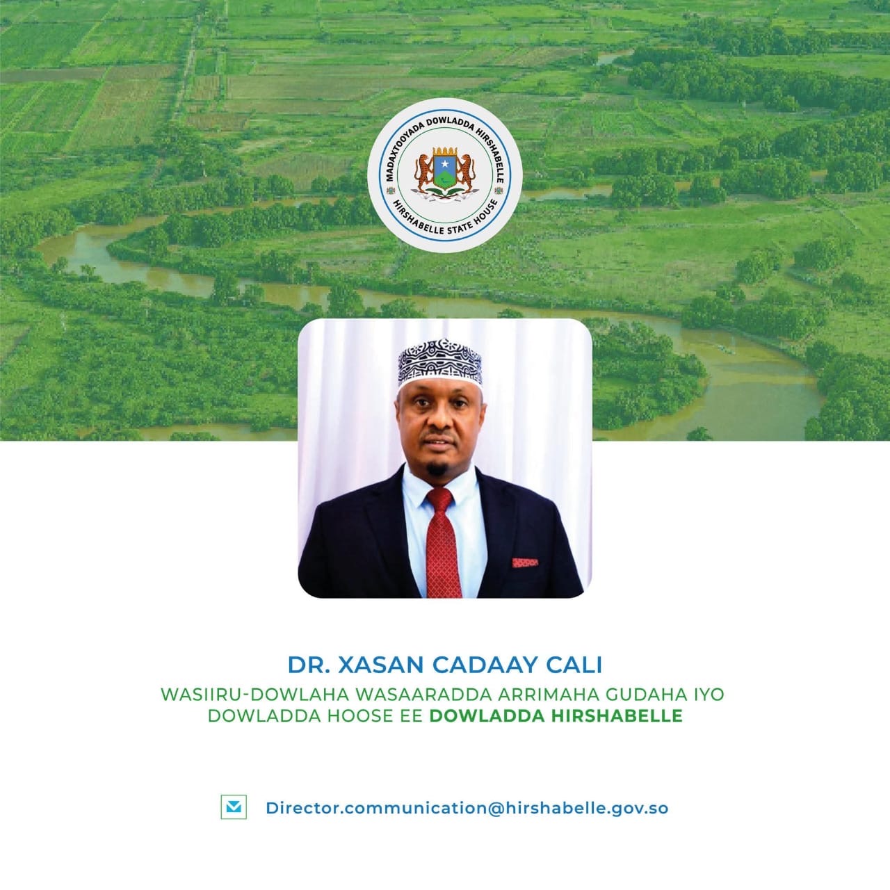 Jowhar:(SONN):- Madaxweynaha Maamulka Hirshabeelle Mudane Cali Cabdullaahi Xuseen (Cali Guudlaawe) ayaa maanta u magacaabay Dr. Xasan Cadaay Cali Wasiiru-dowlaha Wasaaradda…