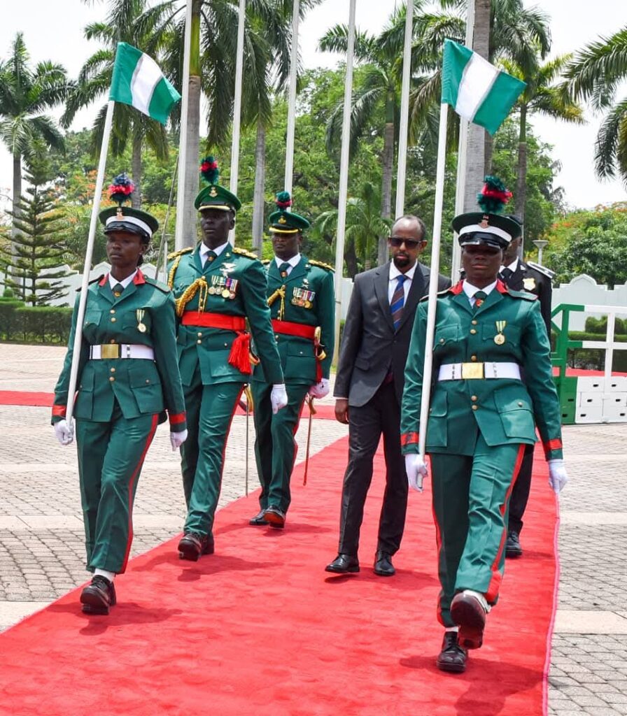 Danjire Maxamed Cusmaan ayaa dhankiisa uga mahadceliyay Madaxweynaha soo dhoweynta diirran, isaga oo caddeeyay sida ay uga go’an tahay xoojinta xiriirka iyo iskaashiga u dhexeeya labada dal, isla markaana ka shaqeyn doona kobcinta iskaashi miro-dhal ah oo dan u ah labada shacab, Safaaradda Jamhuuriyadda Federaalka Soomaaliya ee Nigeria ayaa mar kale adkaynaysa sida ay Dowladda Soomaaliya uga go’an tahay horumarinta xiriirrada caalamiga ah ee ku dhisan ixtiraam is-dhaafsi ah, iskaashi wax-ku-ool ah, iyo dan-wadaag.
