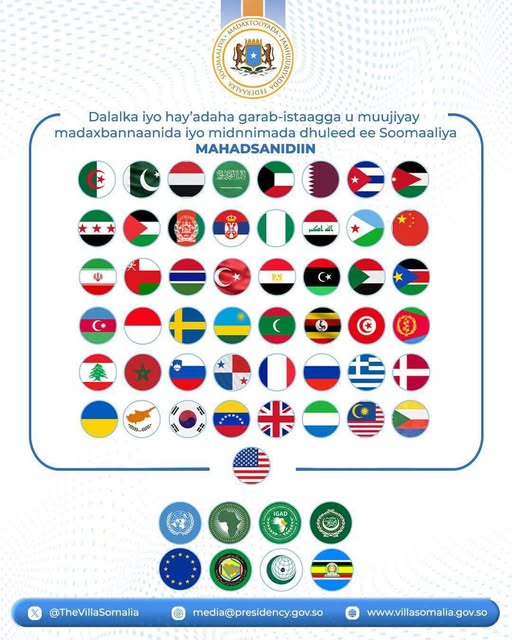 Qoraal ay soo saareen Dowladda Soomaaliya ayaa mahadcelin ballaaran logu jeediyay dalalka iyo hayโadaha caalamiga ah ee taageeray madaxbannaanida, wadajirka iyo midnimada dhuleed ee Soomaaliya.