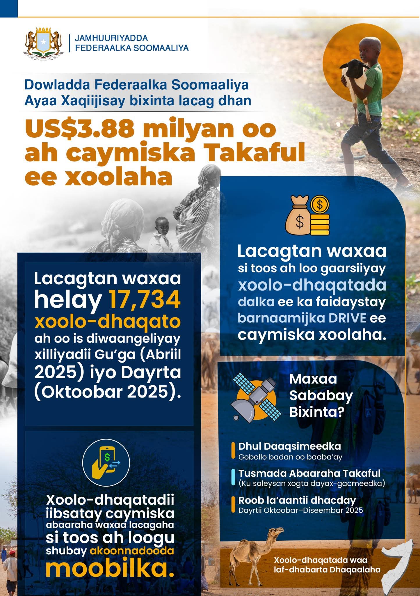 Lacagtan waxaa helay 17,734 xoolo-dhaqato ah oo is diwaangeliyay xilliyadii Gu’ga (April 2025) iyo Dayrta (October 2025).