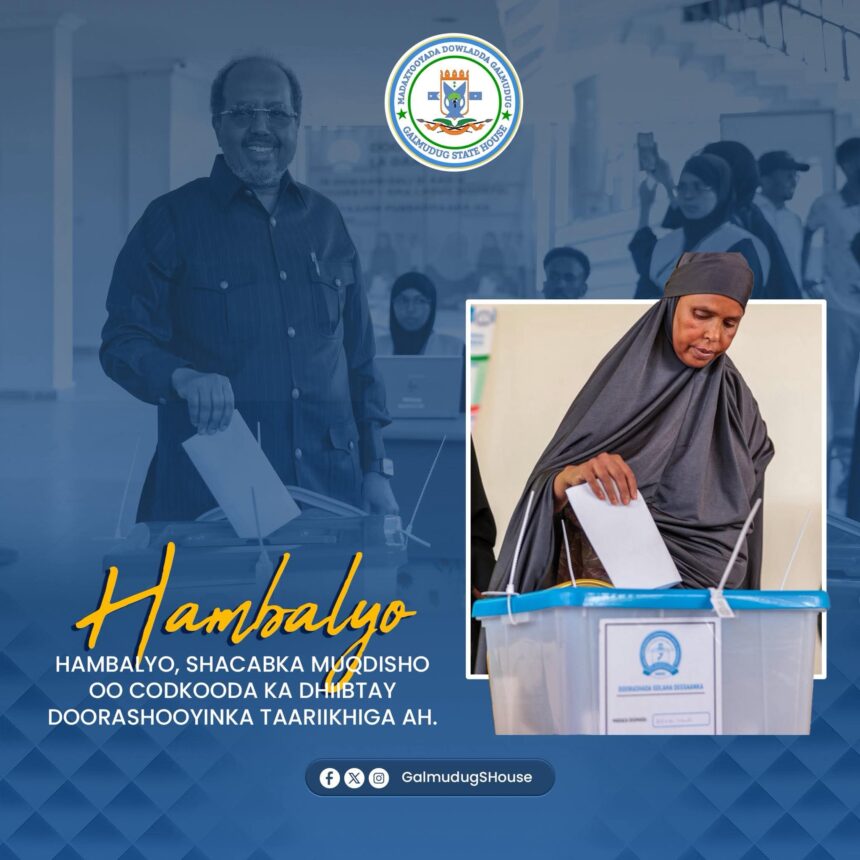 Dhuusamareeb(SONNA):-Madaxweynaha Dowlad goboleedka Galmudug, Mudane Axmed Cabdi Kaariye ayaa ugu hambalyeeyay shacabka Caasimadda Muqdisho ee maanta sida nabad-galyada, xasilloonida, xaddaaradda iyo horumarka leh ugu dareeray goobaha cod bixinta ee doorashooyinka Golaha deegaanka degmooyinka Gobolka Benaadir.
