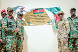 Muqdisho,(SONNA):- Taliyaha Ciidanka Xoogga Dalka, Sarreeye Gaas Odawaa Yuusuf Raage, ayaa maanta xarigga ka jaray dhismaha cusub ee Xarunta Taliska Guutada 6aad ee Qeybta 60aad ee Ciidanka Dhulka Xoogga Dalka, oo laga hirgeliyay magaalada Baraawe ee gobolka Shabeellaha Hoose.