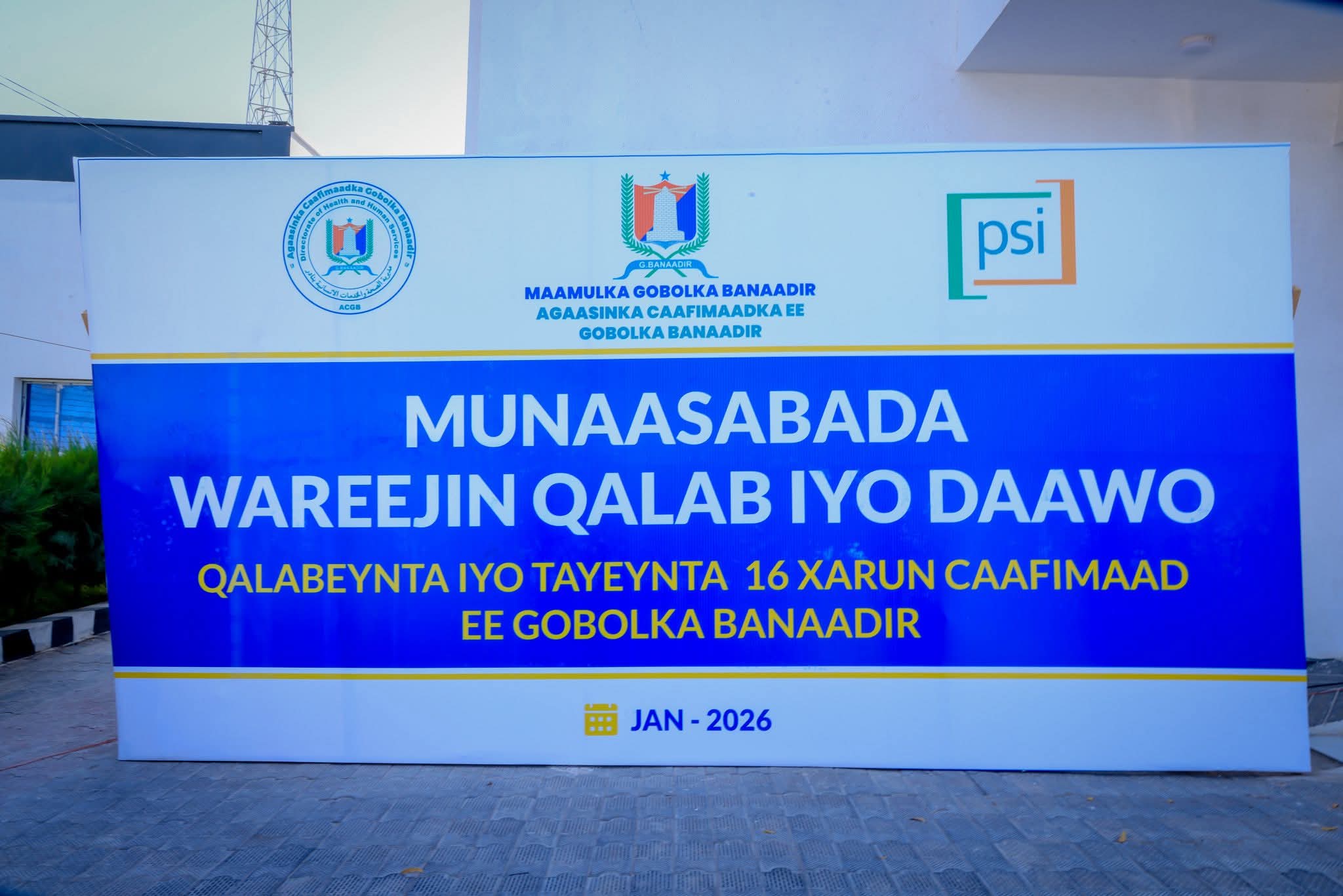 Muqdisho(SONNA):-Guddoomiyaha Maamulka Gobolka Banaadir ahna Duqa Muqdisho, Dr. Xasan Maxamed Xuseen (Muungaab), ayaa Sabtida maanta ah hoggaamiyey munaasabad lagu wareejinayey qalab caafimaad oo loogu talagalay 16 Xarumood oo ku yaalla degmooyinka Gobolka Banaadir.