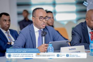 Muqdisho(SONNA):-Guddoomiyaha Hay’adda Maareynta Musiibooyinka Qaranka (SoDMA), Maxamuud Macallin Cabdulle, ayaa ka hadlay furitaanka Shirka Arrimaha Bini’aadannimada Soomaaliya (CHF) oo ka qabsoomay magaalada Muqdisho.