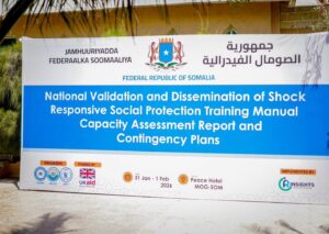 Muqdisho,(SONNA):- Magaalada Muqdisho waxaa lagu qabtay shir qaran oo diiradda lagu saaray ka-jawaabista degdegga ah ee abaaraha iyo xoojinta nidaamyada ilaalinta bulshada, kaas oo ay si wadajir ah u soo qabanqaabiyeen Hayโ€™adda Maareynta Masiibooyinka Qaranka (SoDMA) iyo UN Women.