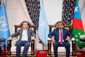 Baydhabo – 29 Abriil 2026: Hogaamiyaha ku-meel gaarka ah ee Dowlad-goboleedka Koonfur Galbeed Mudane Jibriil Cabdirashiid Xaaji ayaa maanta Xarunta Madaxtooyada ee Magaalada Baydhabo ku qaabilay Ku-xigeenka Xoghayaha Guud ee Qaramada Midoobay u qaabilsan Arrimaha Bani’aadannimada iyo Isku-duwaha Gargaarka Degdegga ah, Mudane Tom Fletcher, oo booqasho rasmi ah ku yimid magaalada Baydhabo ee Xarunta Gobolka Baay.