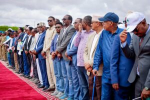 Baydhabo(SONNA);- Guddoomiyaha Golaha Shacabka ee Baarlamaanka Jamhuuriyadda Federaalka Soomaaliya Mudane Sheekh Aadan Maxamed Nuur (Madoobe) iyo wafdi isugu jira wasiiro iyo Xildhibaano uu hogaaminayo ayaa gaaray Magaalada Baydhabo, waxaana garoonka diyaaradaha ee Shaati Guduud kusoo dhoweeyey hogaamiyaha Kmg ah ee maamulka Koonfur Galbeed, wasiiro iyo xildhibaano ka tirsan maamuulka Koonfur Galbeed, Odayaasha dhaqanka iyo sidoo kale qeybaha kala duwan ee Bulshada Magaalada Baydhabo.
